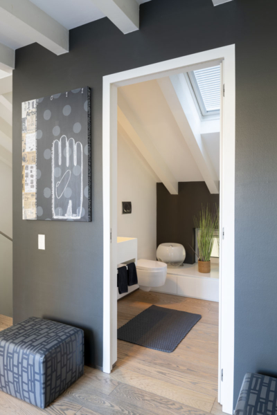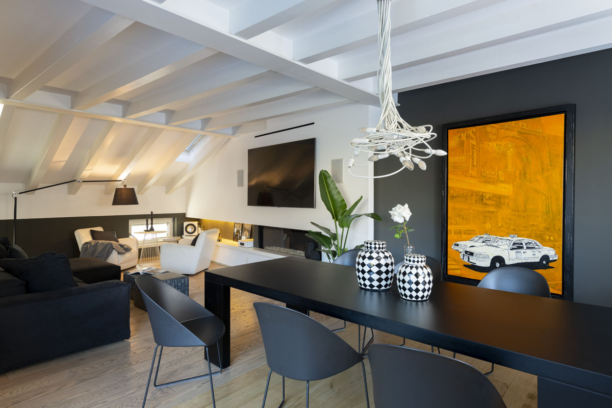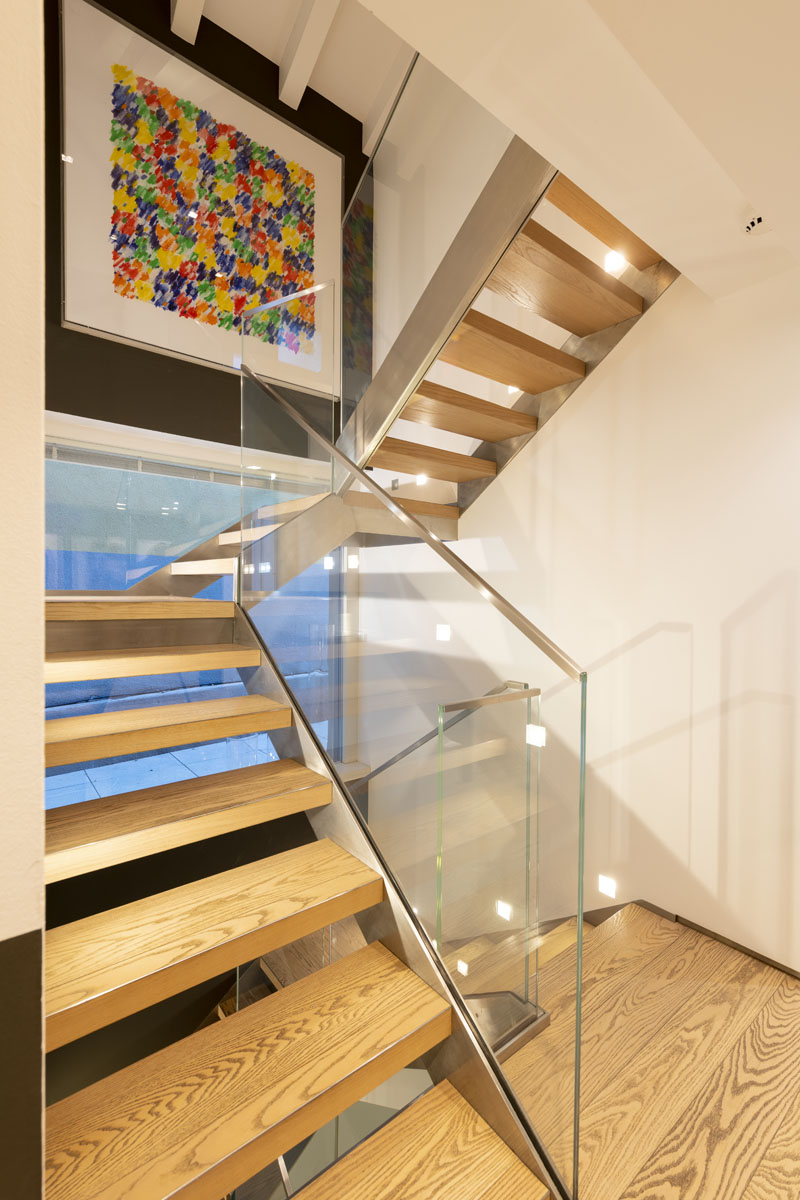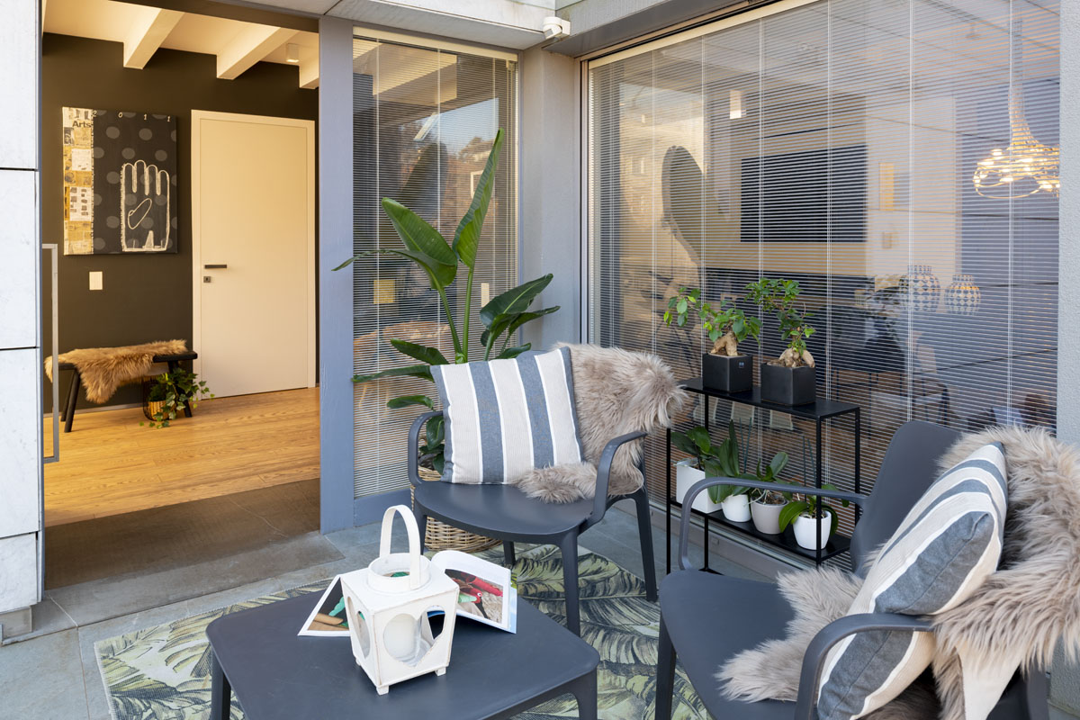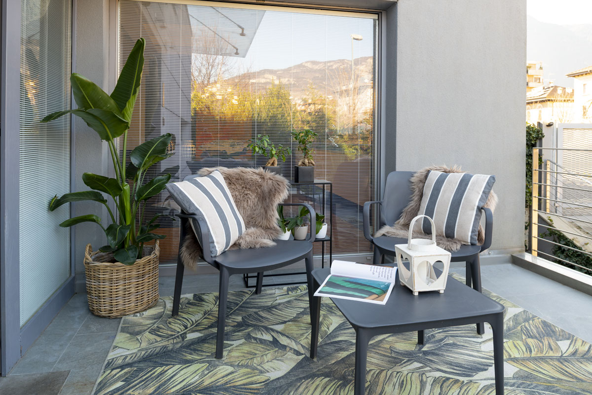 Al secondo piano fantastica terrazza affacciata sul Fersina collegata dall’elevatore privato che serve tutti i piani della casa.