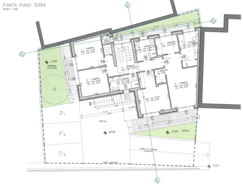 Al piano terra è presente la zona notte composta da 3 camere da letto ampie con 2 bagni e camera matrimoniale con 2 cabine armadio e bagno privato.